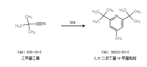 1.通过三甲基乙腈合成2,6-二叔丁基-4-甲基吡啶,收率约30%;