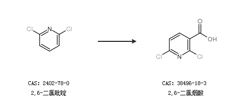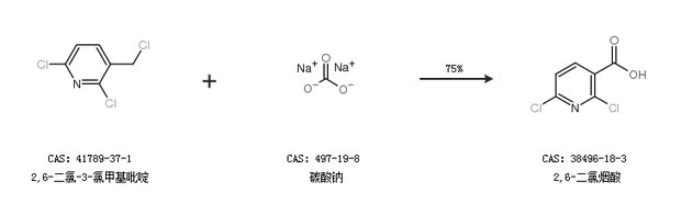 1.通过2,6-二氯-3-氯甲基吡啶和碳酸钠合成2,6-二氯烟酸,收率约75%;