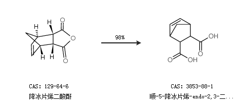 2.通过降冰片烯二酸酐合成顺-5-降冰片烯-endo-2,3-二羧酸,收率约98%;