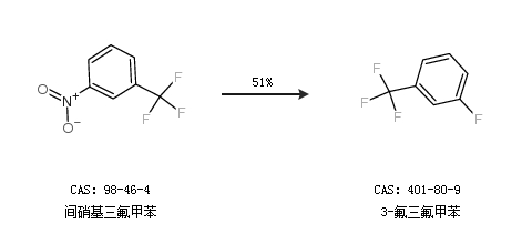 1.通过间硝基三氟甲苯合成3-氟三氟甲苯,收率约51%;