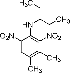 二甲戊灵, 菜草灵, 施田补, 胺硝草,除草通,N-(1-乙基丙基)-2,6-二硝基-3,4-二甲基苯胺