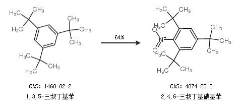 1.通过1,3,5-三叔丁基苯合成2,4,6-三叔丁基硝基苯,收率约64%;