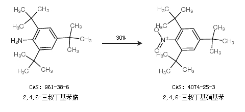 2.通过2,4,6-三叔丁基苯胺合成2,4,6-三叔丁基硝基苯,收率约30%;