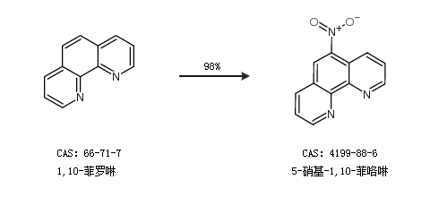 1.通过1,10-菲罗啉合成5-硝基-1,10-菲咯啉,收率约98%;