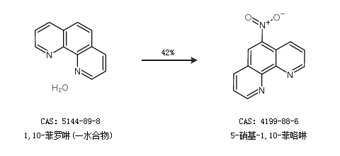 2.通过1,10-菲罗啉(一水合物)合成5-硝基-1,10-菲咯啉,收率约42%;