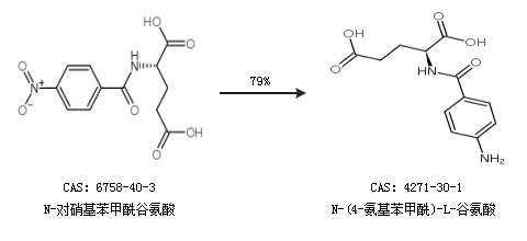 1.通过N-对硝基苯甲酰谷氨酸合成N-(4-氨基苯甲酰)-L-谷氨酸,收率约79%;
