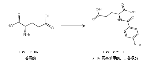 中文别名 N-对氨基苯甲酰-L-谷氨酸;对氨基苯甲酰谷氨酸;N-(4-氨基甲酰)-L-谷氨酸;N-(对氨基苯甲酰)-L-谷氨酸;对氨基苯甲酰基麸质酸;N-(4-氨基甲酰)-L-谷氨酸;