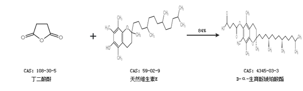 1.通过丁二酸酐和天然维生素E合成D-α-生育酚琥珀酸酯,收率约84%;