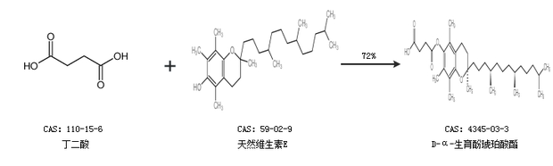 2.通过丁二酸和天然维生素E合成D-α-生育酚琥珀酸酯,收率约72%;