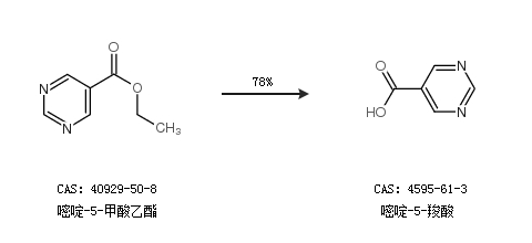 1.通过嘧啶-5-甲酸乙酯合成嘧啶-5-羧酸,收率约78%;