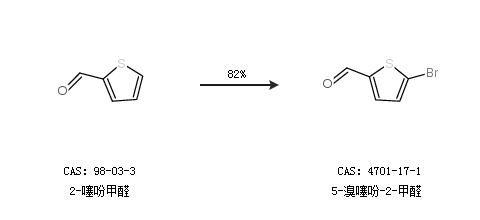 2.通过2-噻吩甲醛合成5-溴噻吩-2-甲醛,收率约82%;