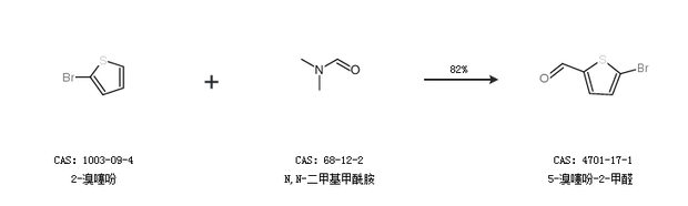 1.通过2-溴噻吩和N,N-二甲基甲酰胺合成5-溴噻吩-2-甲醛,收率约82%;