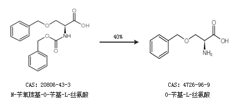 2.通过N-苄氧羰基-O-苄基-L-丝氨酸合成O-苄基-L-丝氨酸,收率约40%;