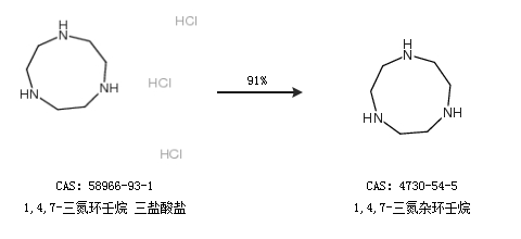 1.通过1,4,7-三氮环壬烷 三盐酸盐合成1,4,7-三氮杂环壬烷,收率约91%;