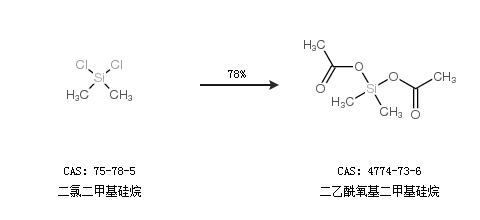 1.通过二氯二甲基硅烷合成二乙酰氧基二甲基硅烷,收率约78%;