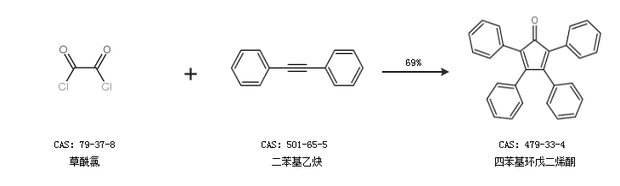 2.通过草酰氯和二苯基乙炔合成四苯基环戊二烯酮,收率约69%;