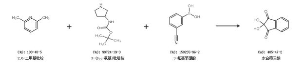 2.通过2,6-二甲基吡啶、3-(Boc-氨基)吡咯烷和3-氰基苯硼酸合成水合茚三酮