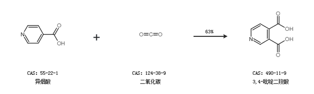 1.通过二氧化碳合成3,4-吡啶二羧酸,收率约73%;