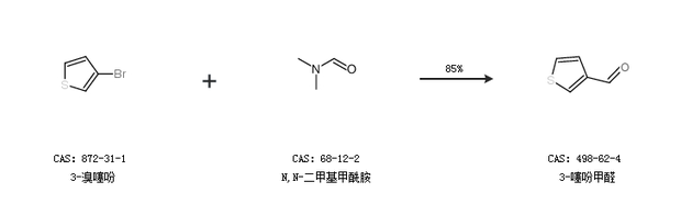 2.通过3-溴噻吩和N,N-二甲基甲酰胺合成3-噻吩甲醛,收率约85%;