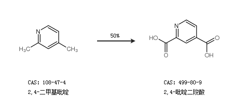 1.通过2,4-二甲基吡啶合成2,4-吡啶二羧酸,收率约50%;