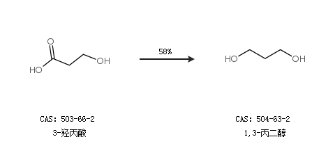 2.通过3-羟丙酸合成1,3-丙二醇,收率约58%;