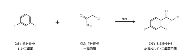 2.通过1,3-二氟苯和一氯丙酮合成2-氯-2'',4''-二氟苯乙酮,收率约95%;