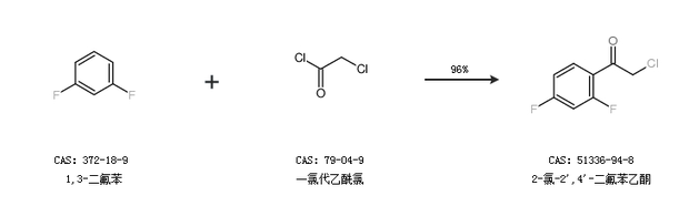 1.通过1,3-二氟苯和一氯代乙酰氯合成2-氯-2'',4''-二氟苯乙酮,收率约96%;