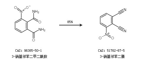 1.通过3-硝基邻苯二甲二酰胺合成3-硝基邻苯二腈,收率约85%;