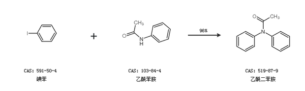1.通过碘苯和乙酰苯胺合成乙酰二苯胺,收率约96%;