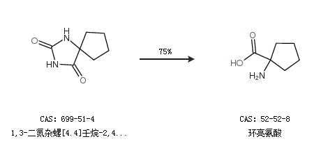 1.通过1,3-二氮杂螺[4.4]壬烷-2,4-二酮合成环亮氨酸,收率约75%;