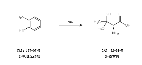 2.通过2-氨基苯硫醇合成D-青霉胺,收率约78%;
