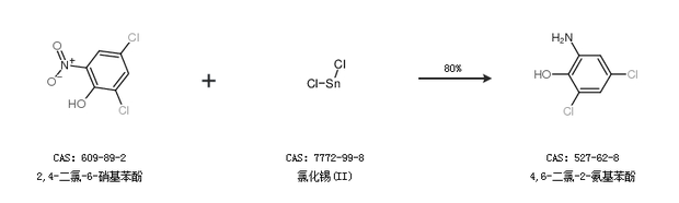 2.通过2,4-二氯-6-硝基苯酚和氯化锡(II)合成4,6-二氯-2-氨基苯酚,收率约80%;