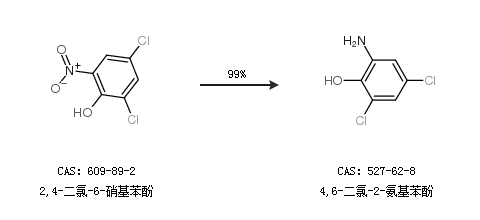 1.通过2,4-二氯-6-硝基苯酚合成4,6-二氯-2-氨基苯酚,收率约99%;