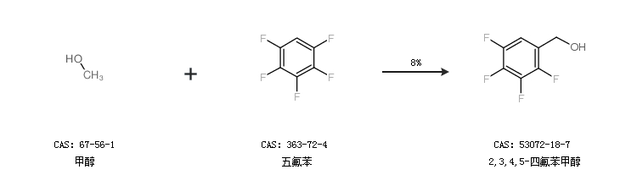 2.通过甲醇和五氟苯合成2,3,4,5-四氟苯甲醇,收率约8%;
