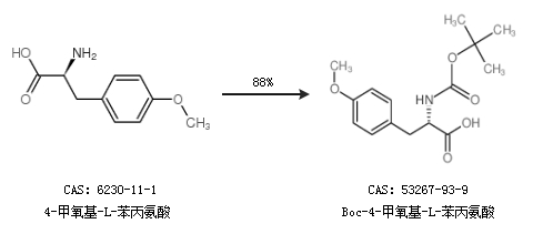 2.通过4-甲氧基-L-苯丙氨酸合成Boc-4-甲氧基-L-苯丙氨酸,收率约88%;
