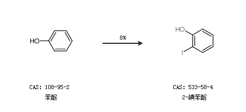 2.通过苯酚合成2-碘苯酚,收率约8%;