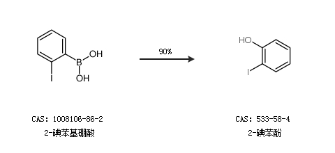 1.通过2-碘苯基硼酸合成2-碘苯酚,收率约90%;
