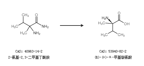 2.通过2-氨基-2,3-二甲基丁酰胺合成(R)-(+)-α-甲基缬氨酸