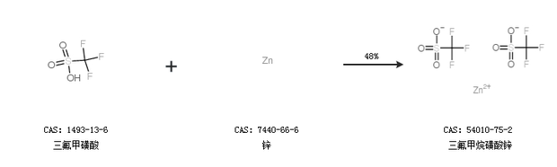 2.通过三氟甲磺酸和锌合成三氟甲烷磺酸锌,收率约48%;