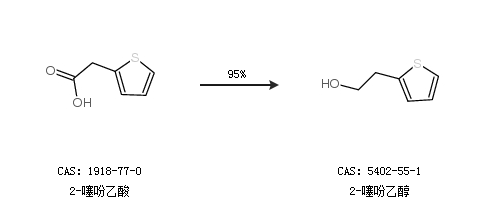 1.通过2-噻吩乙酸合成2-噻吩乙醇,收率约95%;