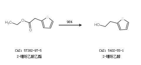 2.通过2-噻吩乙酸乙酯合成2-噻吩乙醇,收率约96%;