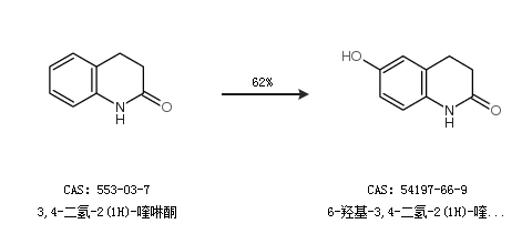 2.通过3,4-二氢-2(1H)-喹啉酮合成6-羟基-3,4-二氢-2(1H)-喹诺酮,收率约62%;