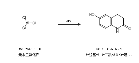 1.通过无水三氯化铝合成6-羟基-3,4-二氢-2(1H)-喹诺酮,收率约91%;