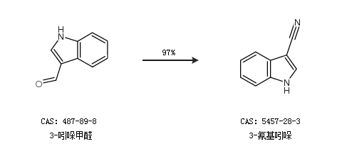 1.通过3-吲哚甲醛合成3-氰基吲哚,收率约97%;