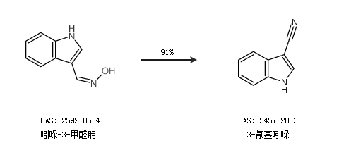 2.通过吲哚-3-甲醛肟合成3-氰基吲哚,收率约91%;
