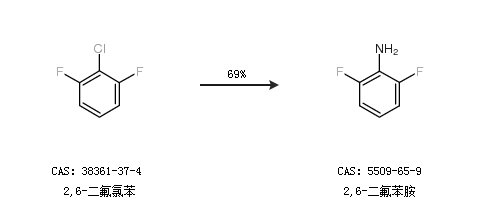 2.通过2,6-二氟氯苯合成2,6-二氟苯胺,收率约69%;