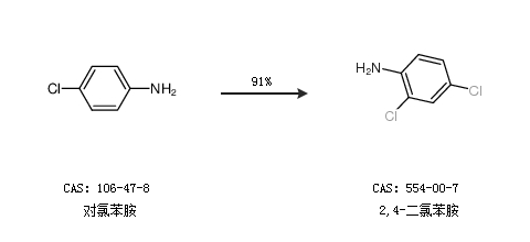 1.通过对氯苯胺合成2,4-二氯苯胺,收率约91%;