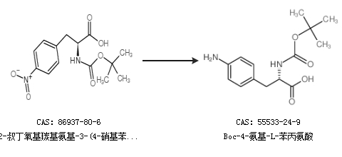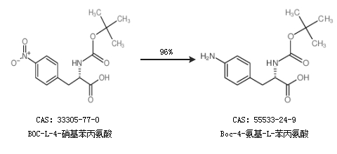 2.通过BOC-L-4-硝基苯丙氨酸合成Boc-4-氨基-L-苯丙氨酸,收率约96%;