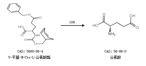 1.通过5-苄基-N-Cbz-L-谷氨酸酯合成谷氨酸,收率约10%;