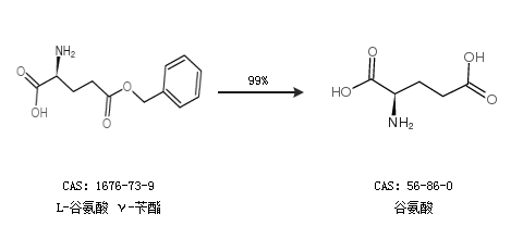 2.通过L-谷氨酸 γ-苄酯合成谷氨酸,收率约99%;